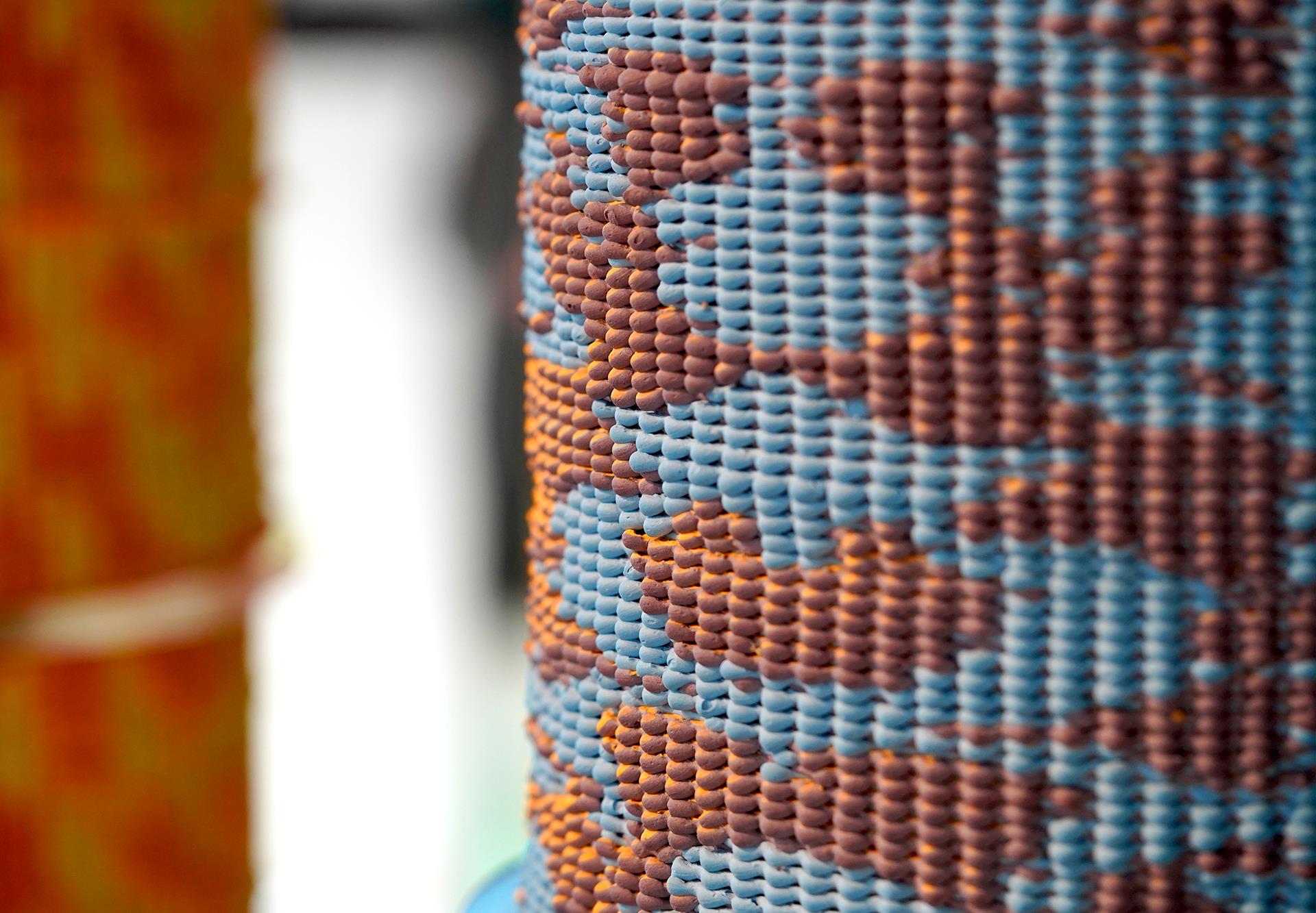 “Sequence” is an experimental installation based on parametric design and multi-color clay 3D printing, aiming to explore new possibilities for contemporary ceramics driven by technology. The work unfolds in the form of a “tower,” composed of multiple cylindrical units stacked vertically, each featuring digital images. It resembles a monument constructed from code and clay, embodying the deep logical connection between materials, algorithms, and form. The generation of patterns is based on the compilation and reconstruction of image pixel data. Under programmatic control, color and texture exhibit a “coded aesthetics” within rationality. The texture of each unit module is both the result of digital computation and the material response of ceramic material to digital logic. Textural changes, akin to data fluctuations, are “printed” into the clay. The overall tower-like stacking not only expresses the construction of a spatial order but also symbolizes a new form of ceramic language intertwined with information, images, technology, and craftsmanship. The work emphasizes the visualization of “craft logic” in the creative process, transforming algorithmic rules, material behavior, and formal growth into tangible structural forms. “Sequence” is the intersection of technology and clay, rationality and sensibility, compilation and construction, representing a profound exploration of the “form's essence” and its generative mechanisms.