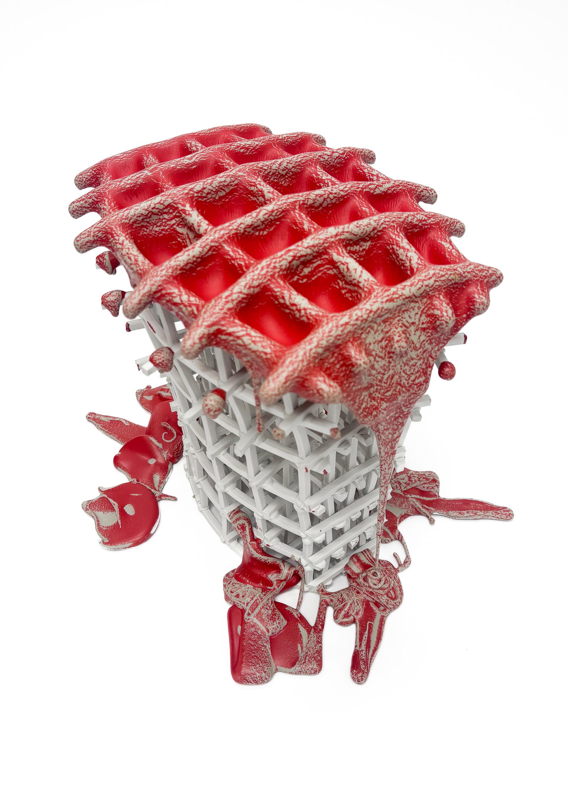 My work explores transformation, focusing on both structure and material. It uses the kiln as a vehicle for deconstruction. The porcelain grid systems I create often begin as digital renderings that are meticulously fabricated by hand. These structures become the architecture over which to stretch a fluid skin that is allowed to warp or collapse under the strain of the firing. They expose the relationship between soft and hard, the fluidity of a membrane, and the moment of intersection between these contrasting elements. They strive to pair labored construction with unpredictability, and capture the entropy embodied in the process.