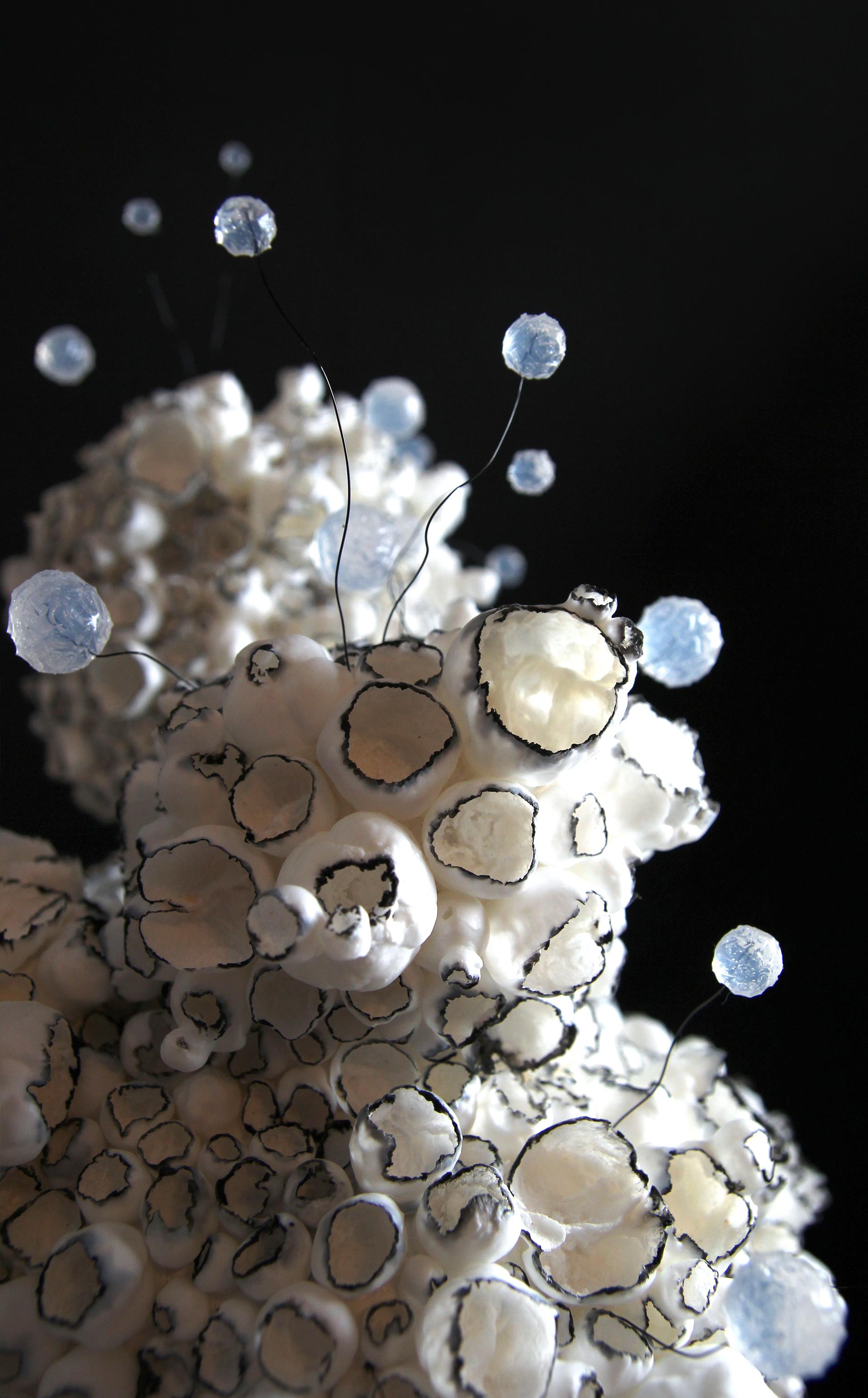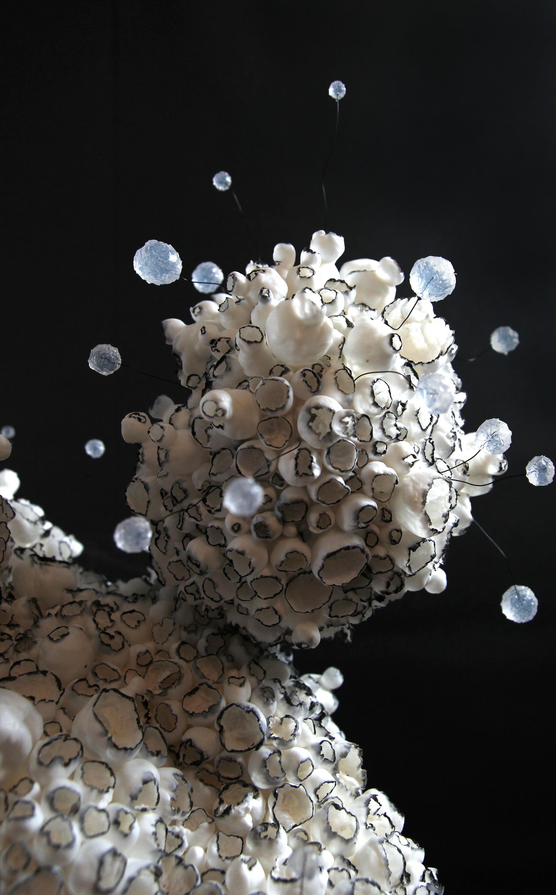The water has left this place, leaving only a shell, a cast of a past life, dissolved into the air, drop by drop. In essence porcelain is clay from which everything has been burnt out, it has no moisture, no organics, it is almost glass, it cannot absorb anything. The whole process of ceramic production is a process of getting rid of water. Just as moisture leaves the earth, just as coral loses its color, so life leaves the body, leaving only a fragile echo of the recent past. There is a kind of solemn and impassioned beauty to it. Also please check the video of the work in motion https://youtube.com/shorts/viB4u2fci2Y