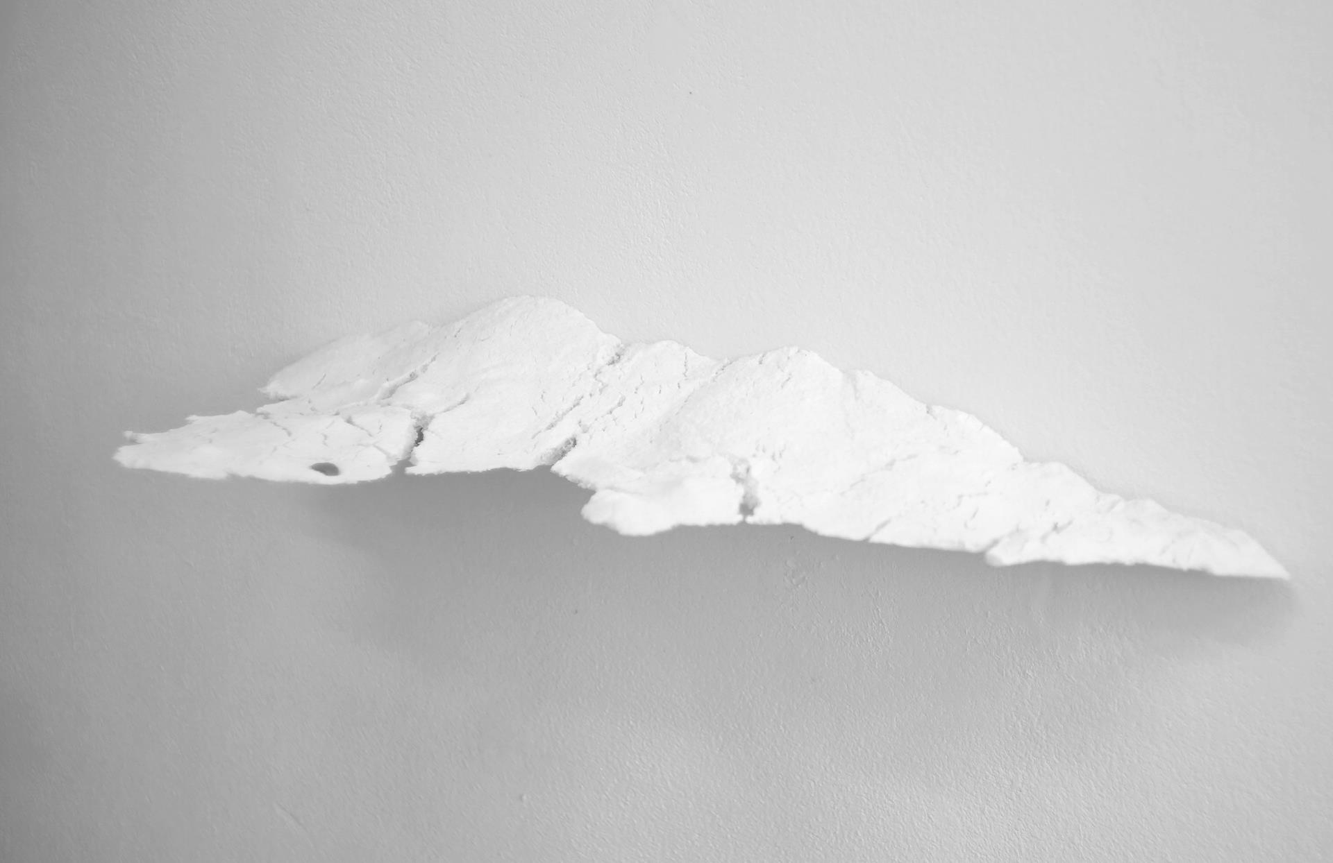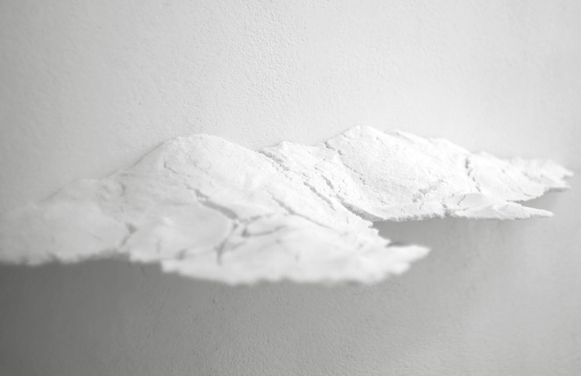 The work collects white porcelain waste from ceramic factories, such as broken slag and broken porcelain bodies after repairing. Grind it into powder again, and according to the internal angle of modern conventional space, use refractory materials to build the kiln layout, and then naturally stack the powder in the kiln structure. The difference in height and thickness of the powder creates a scenic effect. After being fired at 1280 degrees, their bottom surfaces are uniformly elevated above the ground and installed on the walls and corners of the space, forming a unified height plane that divides the space into two parts. The work explores the molding process of ceramics and their interactive relationship with modern architectural spatial structures. The symbolic significance of white porcelain materials and the cultural symbols behind landscape scenery, as well as their unique display methods, all point to the process of using humans as the experiential subject. Through artistic means, it re reflects on the possibilities of industry and nature, rationality and sensibility, eternity and moment.