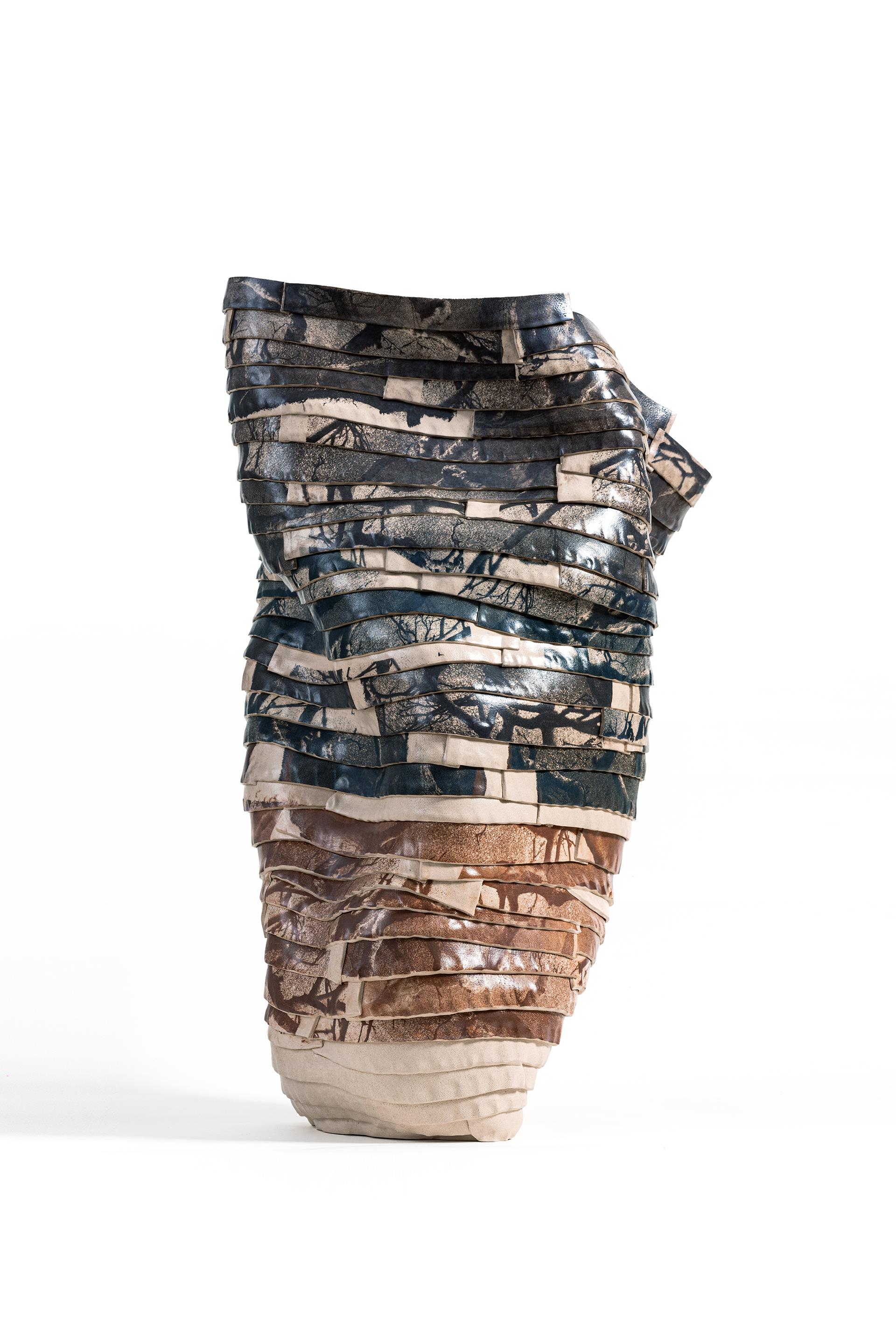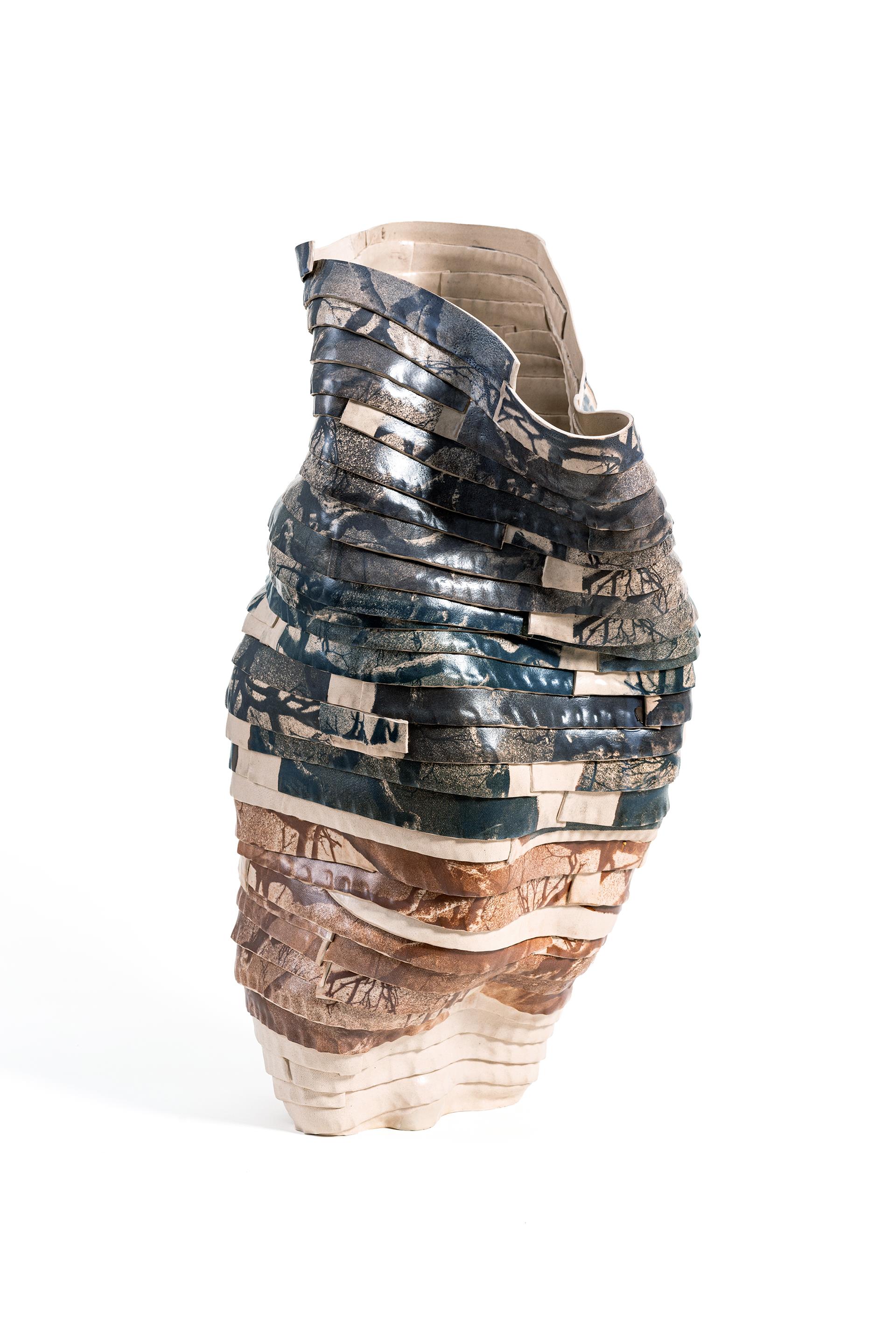 My hometown Chongqing has a very unique landform, with slopes to climb, steps to ascend, bends, the alternation of old and new, and undulating terrain. The Yangtze River and the Jialing River engage in a dialogue between tawny and deep green, just like the work you see, which is divided into two colors in the upper and lower parts. The tawny represents the Yangtze River, and the deep green represents the Jialing River. The Yangtze River and the Jialing River are not completely immiscible; they only present a short-term "clear distinction" phenomenon at their confluence (Chaotianmen in Chongqing). The main reason lies in the differences in the hydrological conditions of the two rivers: • Difference in sediment content: The Jialing River flows through areas with mostly loess or sandy soil, so its water carries more sediment and appears yellowish. The upper reaches of the Yangtze River (here referring to the lower section of the Jinsha River) contain relatively less sediment, making the water clearer. Due to the difference in density when they meet, they are difficult to fully mix in a short time, forming an obvious boundary. • Difference in flow velocity and water volume: The two rivers have different flow velocities and water volumes. The interaction of water flow dynamics when they converge also slows down the mixing speed. However, as the water flows downstream, this boundary will gradually disappear, and they will eventually fully merge into one. The irregular twisted shape of the work represents the rugged, steep, and winding roads of the mountain city, with mist and rain. High-rise buildings stand on steep cliffs; what seems to be a flat floor is actually the 20th-odd floor. The terrain is peculiar, and the scenery is magnificent.