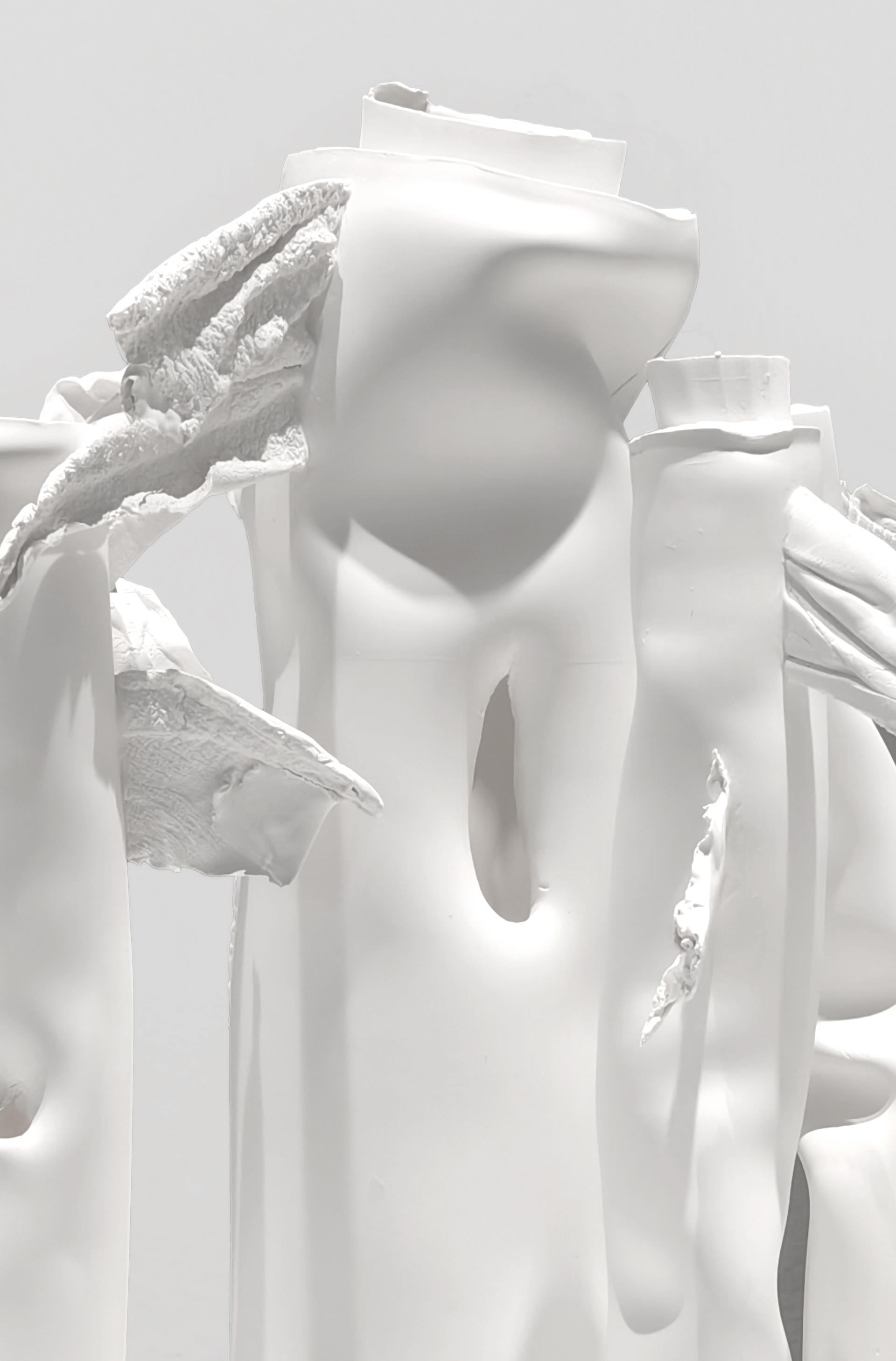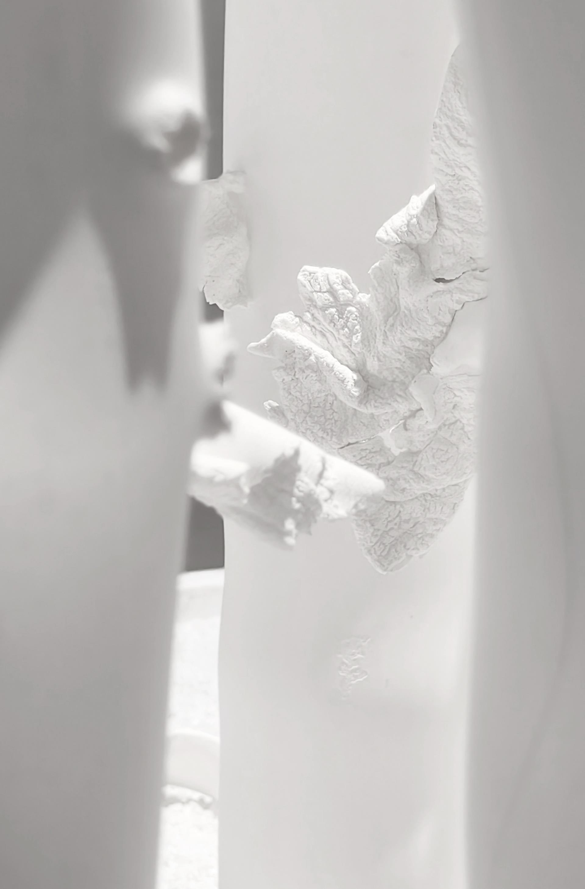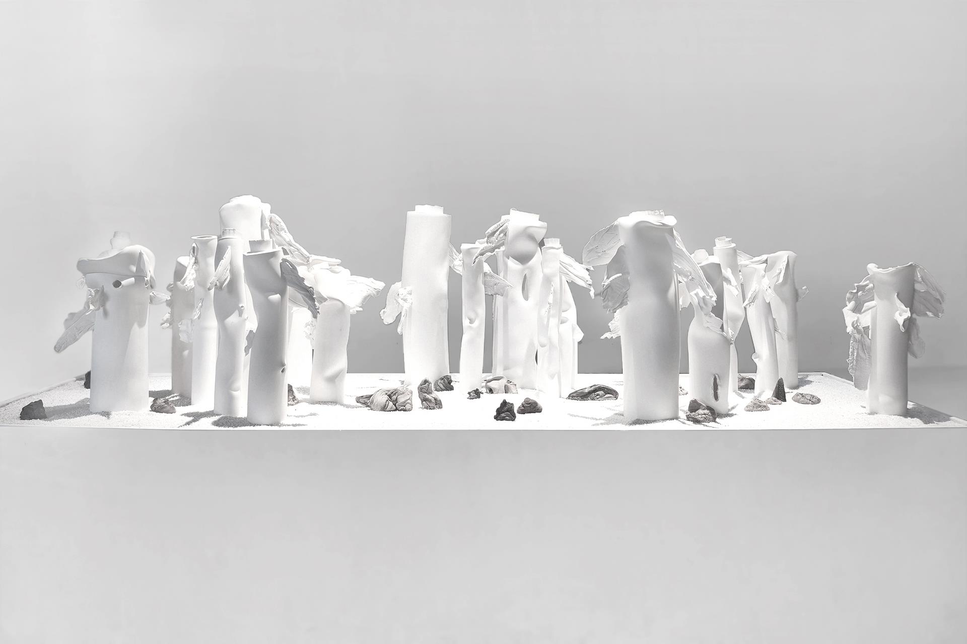 The "Wind Valley" works can vary in size. It mainly uses porcelain clay as the raw material, and uses freehand creative techniques to express different forms of trees. It uses clay to express stones and presents natural textures. The stacking of white sand sets off the atmosphere, as if it is snowing heavily and snowy. I mean to express my respect for nature and my understanding of Tao...