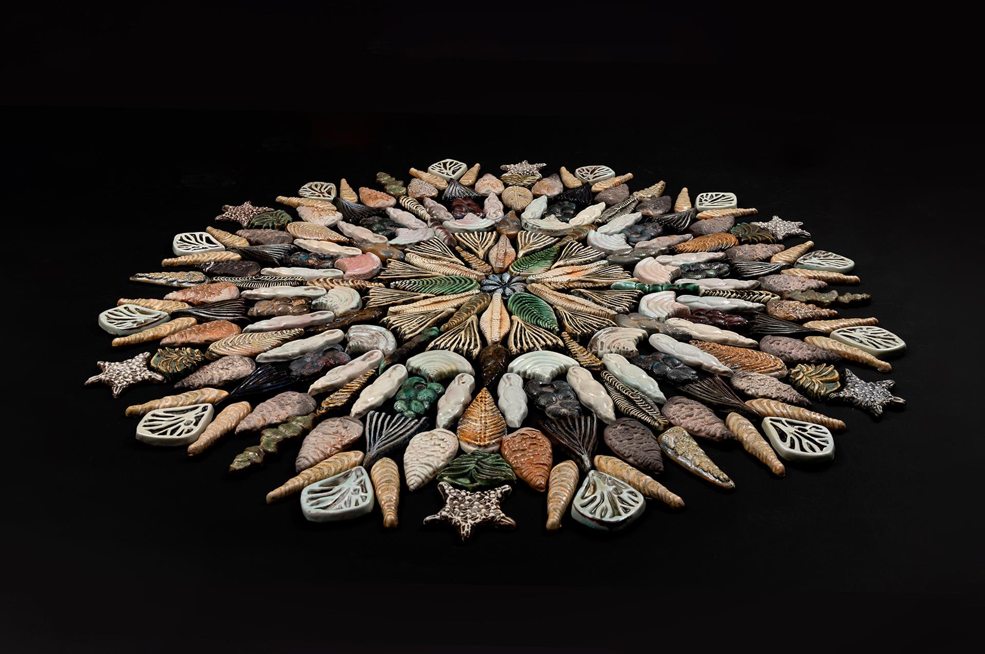 Foraminifera is a continuation of Kay Aplin’s investigation into observing and magnifying micro-organisms which has been the focus of her practice since 2013. Foraminifera developed out of a residency at Interface, Connemara in Ireland in June 2023. Over a four-week period, Kay investigated the geology and ecology of Connemara, collecting samples of moss, lichen, fossils and flora. Each day was spent walking the land, exploring the of the inlets, bogs, and pathways of Connemara, uncovering its histories and topographies. Kay designed a series of forms which represent microscopic fossils, foraminifera, on the beaches of Dogs Bay in Connemara. Her techniques included slip casting porcelain to create multi-layered sculptures composed of hundreds of individual components, which were wood fired with soda to 1280 degrees, developing glazes that visually reference the surface textures of moss and lichen. The resulting work was created for an exhibition at Watts Gallery in 2024 as part of The Ceramic House curatorial project Edges, produced by Kay Aplin and Joseph Young. Edges explored ceramics and sound art practice through the work of artists from Estonia, Ireland and the UK between 2022-2024. https://www.theceramichouse.co.uk/edges/watts/