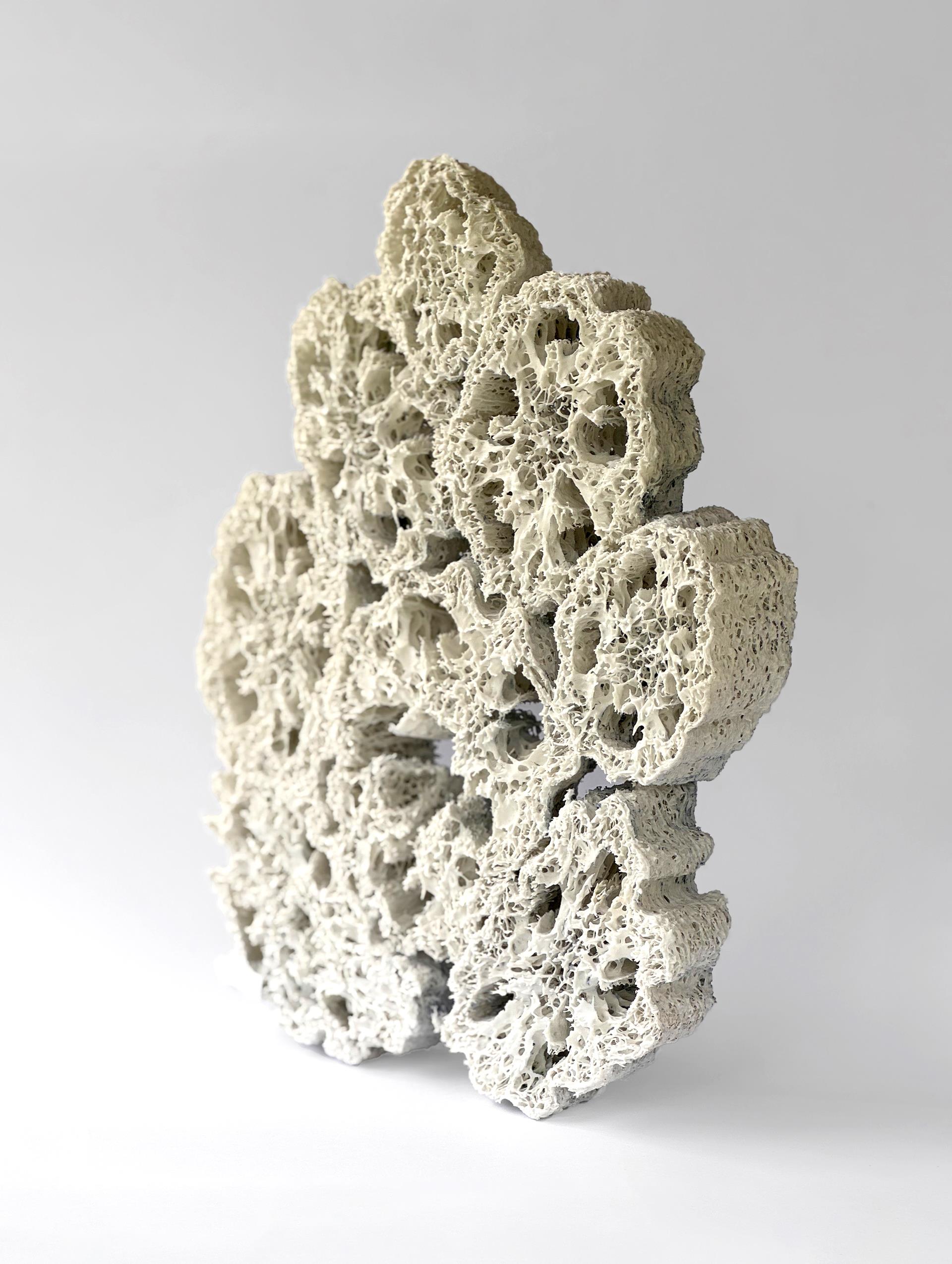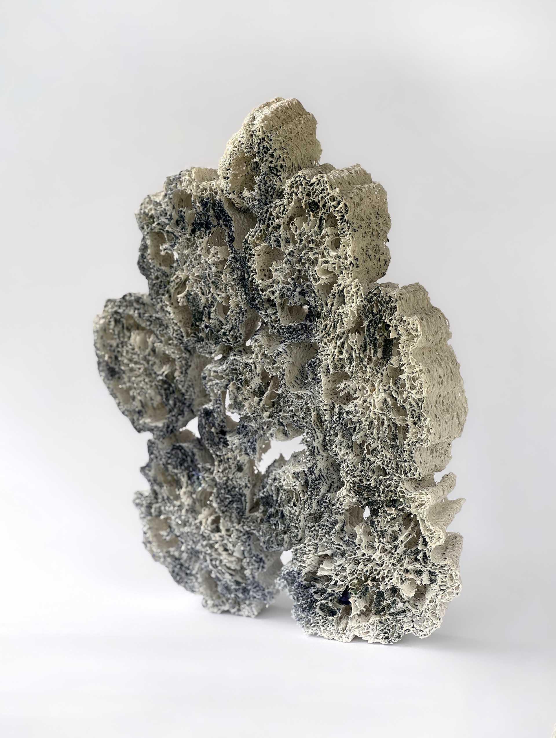 At my work I was playing with textures and structures to show the organic effect inspired by the diversity of plants, fruits and fungi. Working with porcelain helps to create very delicate and thin elements which are translucent and sometimes acting like a stained glass or lace. My work had been woodfired in my own woodfired kiln.