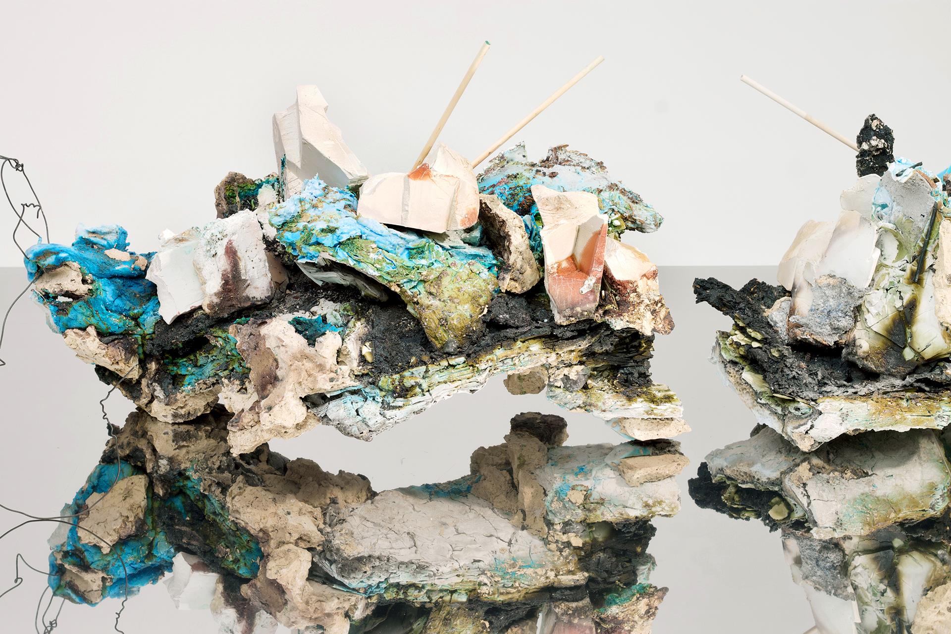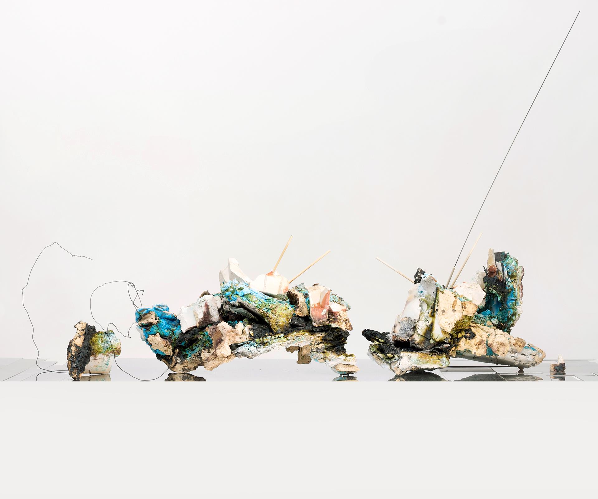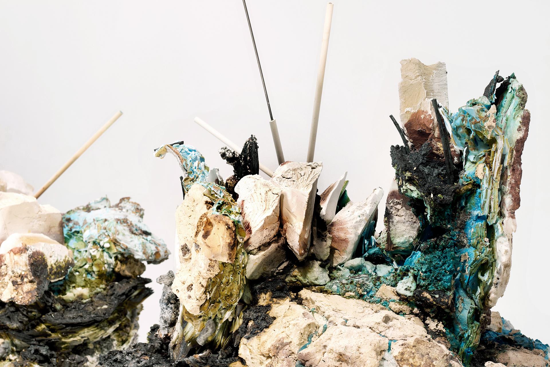 Massafra evokes rocks, minerals, and industrial remnants through raw and irregular forms that seem to bear the marks of time. The surfaces recall geological formations, fossils, and archaeological artifacts; cracks and fractures symbolize the movements of the Earth's crust, reflecting the tensions and conflicts that shape our planet. These abstract forms suggest a vision of the future in which nature and humanity are called to find a new balance. Through assemblages of different ceramic and ferrous materials, oxides, and glazes, layered over time, structures never seen before have emerged. The creative process recalls archaeological stratification, where materials overlap and settle with time, creating a sedimented memory of matter. A new form of “nature” takes over: forms and spaces give life to compositions animated by encrustations and material variations. The shapes become sharp, representing the jagged edges of cliffs and rock-like surfaces that resemble an ancient petrified “ark,” a possible Noah’s Ark of the future. This image perhaps alludes to the desire to harmonize natural forces with human ones, emphasizing the dangers of the disconnection between humanity and nature. Faced with the immensity of the universe, the work invites us to reflect on the smallness of humanity and the need to respect the planet’s resources, bringing attention back to Earth and our relationship with it. Fragments emerge that recall the ruins of contemporary cities: fractured forms rise from the ground like “urban relics,” almost an apocalyptic archaeology that tells of desert-like scenarios. It is an invitation to look at the world—and our place within it—with renewed eyes, where clay is not just a tool for creating objects, but also a medium for imagining the universe and reflecting on ourselves, opening us to a new awareness.